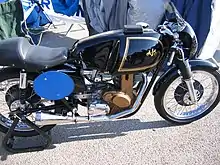 In 1951 AJS development engineer Ike Hatch developed a 75.5 mm (3.0 in) bore x 78 mm (3.1 in) stroke, three valve head version of the AJS 7R making 36 bhp (27 kW).[2] It was called the AJS 7R3, and was Ike's response to the Italian multi-cylinder racers. They did well enough in their first year, not as well the second. For 1954 Jack Williams, the works team manager, developed the bike further, lowering the engine in the frame, and making some tuning changes that gave 40 bhp (30 kW) @ 7800 rpm. It immediately won the first two rounds of the World Championship and took first at the Isle of Man TT. These were factory specials, but one has survived, and a second has been reconstructed from spares. In 1953 there was a Clubman range of Matchless/AJS 350 cc and 500 cc singles, and the production model Matchless G45 500 twin became available.
