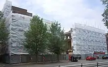 A revised planning application was submitted in December 2013. Although several elements remained the same, such as office accommodation, community facilities and a café/restaurant, the developers now included six flats in their proposal. These would be built at the top of the complex, which would rise to six storeys at the front and three storeys to the rear. No car parking would be provided, but bicycle parking was included in the new design. The city council was expected to decide on the application in March 2014,[33] and in that month granted approval[34] which remained valid as of May 2015;[35] but in December 2014 Holland sold the building to Unicity, part of Knightsbridge Student Housing. This company submitted a new planning application in May 2015 in respect of a building consisting of 73 privately rented flats, offices and community space. The proposed housing density was significantly greater than that for which permission was granted in 2014.[35] This scheme was permitted on appeal; but the building was subsequently sold on again to a company called Ktesius. Their plan for 70 luxury flats called Brighton Rox was granted approval in January 2017.[36] The new development will cover about 67,000 square feet (6,200 m2) and will include shop and office units at ground-floor level and six storeys of flats above, with between one and four bedrooms. Cove Burgess Architects were commissioned to design Brighton Rox; it was stated in October 2017 that the building would be completed at the end of 2019.[37]