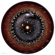 Observations of the large-scale structure of the Universe, a branch known as physical cosmology, have provided a deep understanding of the formation and evolution of the cosmos. Fundamental to modern cosmology is the well-accepted theory of the Big Bang, wherein our Universe began at a single point in time, and thereafter expanded over the course of 13.8 billion years[79] to its present condition.[80] The concept of the Big Bang can be traced back to the discovery of the microwave background radiation in 1965.[80]