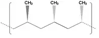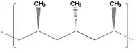Isotactic polymers are composed of isotactic macromolecules (IUPAC definition).[6] In isotactic macromolecules all the substituents are located on the same side of the macromolecular backbone. An isotactic macromolecule consists of 100% meso diads. Polypropylene formed by Ziegler–Natta catalysis is an isotactic polymer.[7] Isotactic polymers are usually semicrystalline and often form a helix configuration.