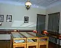 There are four rooms on the ground floor. On the 1st floor is the reception room, with European sofas, a large console table, and a chased brazier; a large sitting-room, with low banquettes around the walls; Kemal's mother's room, with a bed, a banquette, and a trunk; and the kitchen, equipped with contemporary cooking utensils. The most impressive room on the 2nd floor is the one in which Kemal was born, a large room with a banquette, his desk, and a large brazier. It faces another room, in which some of Kemal's personal effects from Ankara are displayed. These include formal dress, smoking requisites, cutlery, cups, and other items. All the documents relating to Kemal's schooldays have been hung on the walls. A pomegranate tree planted by Kemal's father still grows in the courtyard.[3]