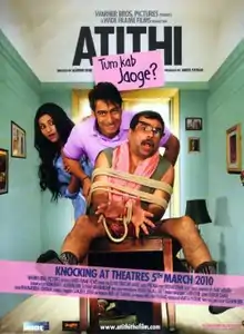 Atithi Tum Kab Jaoge? (transl. Guest, When Will You Leave?) is a 2010 Indian Hindi-language comedy film directed by Ashwni Dhir, and produced by Amita Pathak. Loosely based on the short story Tum Kab Jaoge, Athithi? by Sharad Joshi, the film stars Ajay Devgn, Paresh Rawal and Konkona Sen Sharma. It was released on 5 March 2010. The film was a commercial success and earned more than double its budget. It received numerous nominations at Indian award ceremonies.[2]