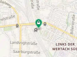 Augsburg-Oberhausen station is a station in the northwest of the central Augsburg in the suburb of Oberhausen in the German state of Bavaria. It is the second most important station in the city. It is classified by Deutsche Bahn as a category 4 station.[1] The current station building was built south of the old Oberhauser station in 1931/32, in the New Objectivity style. There is a large tram and bus stop in front of the station building, the exterior of which has recently been renovated.