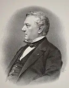 The Société d'économie politique was founded on 1 February 1842 in Paris.[5] The society was open to men with very different positions in life and diverse political views, most of them influential either through their position or their writings. They could meet on neutral scientific grounds to exchange views on subjects such as the functions of the state, land rents, commercial freedom, public finances, the Crédit Foncier, regulations and socialism. The central theme was always political economy.[6] In 1845 the society elected two presidents (Charles Dunoyer and Hippolyte Passy), two vice-presidents (Horace Émile Say and Charles Renouard), a secretary (Joseph Garnier) and a quaestor (Gilbert Guillaumin).[7] Renouard was made a Peer of France on 21 July 1846, and supported the government of Louis-Philippe in the Chamber of Peers until the February Revolution.[2]