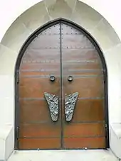 The first Augustinian monks settled at the present location, then at the western ring of the town wall around 1270 AD.[5] The monastery consisted of a Romanesque church on today's site as well as the monastic buildings built around the cloister to the north. Like the Predigerkloster monks before them, the monks were allowed to establish a cemetery at Zähringerstrasse for "prayer" (used for Dominican friars, the 'blackfriars') abbey, and repealed in 1843.[6] The order in later years supported the Brun regime of the Guilds of Zürich. The order purchased houses in the late 13th and early 14th century, and was in close contact with the nobility and landed gentry in Zürich and the surrounding area, among them the Bilgeri family (Grimmenturm) and the House of Rapperswil, that had after their expulsion around 1345 found asylum in Rapperswil. Memorial measurements had to be held until the 14th century at Grossmünster, because thus the most income was achieved. Until the Reformation in Zürich, all income obtained with the funerals had also to be delivered to the Grossmünster abbey. Within the city, as the other mendicant orders, the Augustinians were reduced to the function of area pastors. The convent was abolished in 1524, worship in the church was discontinued, and the buildings and income of the monastery were assigned to the Augustiner Amt, then a bailiwick or administrative entity of the city of Zürich.