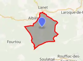 The commune is located in the Corbières Massif some 35 km south-east of Limoux and 15 km east of Arques. Access to the commune is by the D212 road which branches from the D613 west of Mouthoumet and goes south through the commune by a tortuous route then continues south to join the D10 north-east of Soulatgé. Apart from the village there are the hamlets of Savugnan in the south-west and La Grave north of the village. The whole of the commune is rugged and heavily forested.[3]