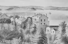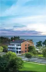 The Aurora Inn was built in 1833 at Aurora, Cayuga County, New York, for Edwin B. Morgan, a local businessman involved in trade and shipping on Cayuga Lake, one of the seven Finger Lakes. Aurora served as a port for shipping goods up the lake and through the Erie Canal to New York City and other major markets. Originally named Aurora House, the Aurora Inn was set on the shores of Cayuga Lake.
