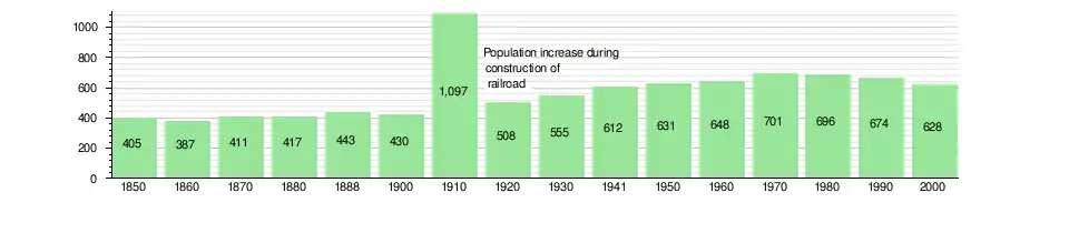 Ausserberg has a population (as of December 2020) of 621.[8] As of 2008, 5.7% of the population are resident foreign nationals.[9] Over the last 10 years (2000–2010 ) the population has changed at a rate of 0.3%. It has changed at a rate of 1.4% due to migration and at a rate of -1.1% due to births and deaths.[5]