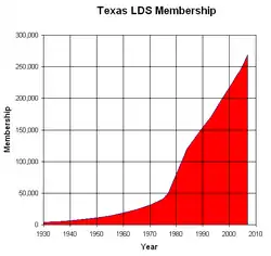 Texas has the 5th most members of the LDS Church in the United States, and the most members east of the Rocky Mountains.[4] The LDS Church is the 6th largest denomination in Texas.[5]