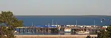 The director planned to begin filming in March 2007.[18] However, principal photography began on 30 April 2007 in Sydney,[19] and Kidman found out that she was pregnant. She instantly withdrew from her next film, The Reader.[20] Afterwards, the production moved to Bowen on 14 May.[14] Filming in Kununurra was a gruelling experience for the cast and crew with temperatures soaring to 43 °C (109 °F) which, one day, caused Kidman to faint while on a horse.[20] In addition, she worked 14- and 15-hour days while dealing with morning sickness.[20] While shooting in a remote region of Western Australia, the shoot had to be rescheduled when the Faraway Downs set, the homestead central to the film's story, was reduced to mud from torrential rain – the first in 50 years.[21] The cast and crew went back to Sydney to shoot interior scenes until the expensive set dried out.[15] In addition, at one point, the entire country's horses were in lock down over equine flu.[4] Scenes using Darwin harbour were shot in July 2007, with parts of Stokes Hill Wharf blocked to the public and mini buses used to ferry tourists past the film set.[22] Filming lasted five months, wrapping up at Fox Studios, Sydney, on 19 December 2007.[23] In late April, Luhrmann titled his project Australia. Two other titles that he considered for the film had been Great Southern Land and Faraway Downs.[24] On 11 August 2008, eight months after filming wrapped, several members of the cast and crew were back at Fox Studios, Sydney, to film pick up shots.[25]