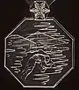 | Description | 32 mm nickel-silver octagonal medal, ensigned with a hexagonal ice-crystal device, surmounted by a plain suspender bar, and suspended on a 32 mm snow-white moire ribbon, edged with three shades of blue.[3] |