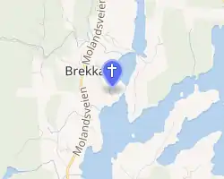 Austre Moland Church (Norwegian: Austre Moland kirke) is a parish church of the Church of Norway in Arendal Municipality in Agder county, Norway. It is located in the Brekka, along the lake Molandsvann. It is one of the churches for the Moland parish which is part of the Arendal prosti (deanery) in the Diocese of Agder og Telemark. The white, wooden church was built in a cruciform design in 1673 using plans drawn up by the architect Ole Ormsen. The church seats about 496 people.[1][2][3]