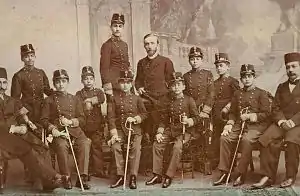 Colonel Adalbert Schönowsky von Schönwies, serving as head of mission, departed with 30 other officers for Tehran on 29 October 1878. On 12 November 1878, the mission arrived in Tarnopol, where it was joined by retired military bandmaster Julius Gebauer, who had purchase instruments in Vienna for a Persian military band. Fourteen mission participants then traveled with 2.4 tons of luggage by train to Odessa, by ship to Poti, again by train to Tbilisi, from there to Baku and finally via the Caspian Sea to Rasht.[2] The mission arrived in Tehran in January 1879. It was accompanied by Albert Joseph Gasteiger Freiherr von Ravenstein und Kobach, who had already served in Persia several years.