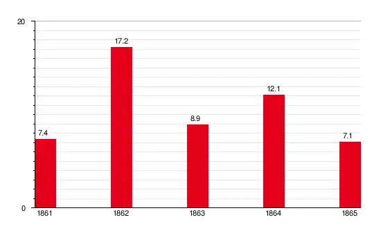 In Austria, the results of the battle were so decisive that Rechberg reversed his opinion completely upon learning of the engagement, and asked the Reichsrat to approve all the new naval expenditures Ferdinand Max had been calling for. In June, the Austrian Reichsrat approved Archduke Ferdinand Max's budget, but directed the Oberkommandant der Marine to cut expenditures not related to training, naval construction and ship maintenance. The Reichsrat also ordered Ferdinand Max to purchase more coal from domestic sources, and to only rarely send warships out beyond the Mediterranean Sea.[93] For 1863, the Imperial Austrian Navy was allocated some 8,900,000 Florins, a huge sum and far higher than previous budget outlays for naval affairs, but this was below the 10,900,000 Florins that Ferdinand Max had originally asked for. In compensation however, Wickenburg was able to acquire a further 4,000,000 Florins from the Reichsrat for the navy's 1862 budget. In November, the bill was approved and the Imperial Austrian Navy received its largest budget in history.[94]