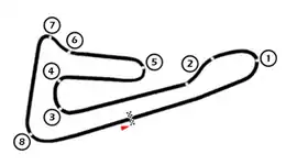 Autodromo di Mores is a permanent motor racing and motorbike race track on the Italian island of Sardinia. Building first started on the circuit on 15 July 2000 and was completed on 15 March 2003.[1] The circuit hosts the Prove Libere Motociclistiche, Sardegna VaCanze, BMW Academy, Gully Racing and Sardegna Motori.[2] The circuit is located mid-way the two ports and airports in northern Sardinia, Olbia, Porto Torres and Alghero Fertilia.