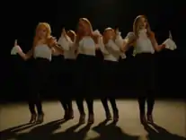 The music video is set in a composition of different spaces arranged like a human memory.[37] In order to project the lyrics "I want to continue to stay in your space together" and express that it stays in the memory without departing it, the video is directed with a symmetrical narrative.[32][38] In addition, it has also redesigned spaces and scenes with unique angles and camera walking.[39] Through the narrative, a differentiated visual beauty is provided that emphasizes a "drowsy yet feminist" concept, "amplifying" curiosity about the opposite double title track.[33][40] All five members are "showcasing sensual choreography at a dimly lit dinner table".[14] The visual became the sixth-most viewed K-pop music video worldwide and the fourth-most viewed in the United States by March 2015.[41]