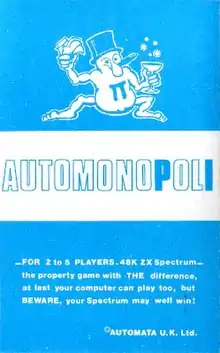 Automonopoli was released by Automata UK in June 1983, written primarily in BASIC,[1] and modelled the board game Monopoly in every detail of gameplay.[1][2] Although other versions of Monopoly for home computers were already in circulation for play between human players, at the time of its release Automonopoli was marketed as the first version of the game with an artificial intelligence advanced enough for the computer to play against human players.[3]