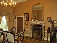The house is Georgian, probably designed by James Wyatt and built in 1777. It is notable for its fine plasterwork and still contains many original pieces of furniture.[4] The American Room is dedicated to Admiral Charles Stewart (1778-1869), Parnell's American grandfather who commanded the USS Constitution (now moored in Boston Harbor) during the War of 1812.[5]