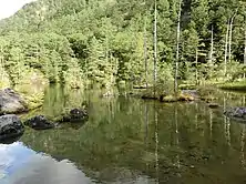 The Myojin Pond in Kamikochi, Japan attracts both traditional descendants of the Azumi people, as well as tourists. It has a clear, mirror-like reflection, and is classified as one of the most revered places to worship the deities of the Azumi people.[19]