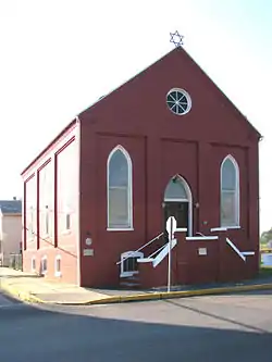 B'nai Jacob Synagogue is a historic Conservative synagogue located at the intersection of Nissley and Water Streets, Middletown, Dauphin County, Pennsylvania. It was built in 1906, and is a one-story brick building with a front gabled roof. The front facade features brick recessed panels with pointed arched windows and a circular window. Atop the front gable is a Star of David. It is the oldest building erected as a synagogue in Dauphin County.[2][3]