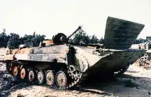 The BMP-1 is a Soviet amphibious tracked infantry fighting vehicle. BMP stands for Boyevaya Mashina Pyekhoty 1 (Russian: Боевая Машина Пехоты 1; БМП-1), meaning "infantry fighting vehicle, 1st serial model".[11] The BMP-1 was the first mass-produced infantry fighting vehicle (IFV) of the Soviet Union.[8][12] It was called the M-1967, BMP and BMP-76PB by NATO before its correct designation was known.[13][14]