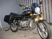 The BMW R65 was a light touring motorcycle introduced by BMW in 1978 to add a mid-size motorcycle to its product line. The original R65, contrary to the views of some commentators has the same sized frame as the larger R series motorcycles, the R65 does however have a shorter swingarm than its siblings and therefore a shorter bolt-on rear sub-frame, this along with the shorter front forks and 18" front wheel gives the illusion that the R65 frame is smaller. The initial "model' R65 was manufactured until 1984. In 1985 the R65’s engine was put into the same frame and suspension as the R80 which featured a single rear shock absorber (mono-shock).[1] Additionally, between 1981 and 1984 the R65LS was manufactured. This R65 variant had a small triangular fairing that was designed by Hans Muth.[2]