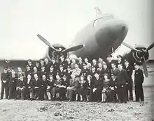 The Douglas DC-3-194 was the first DC-3 delivered to KLM on 21 September 1936. It originally carried the aircraft registration PH-ALI and was named Ibis, the bird venerated in the ancient world.[7][8] In the afternoon of 9 May 1940, the day before the German invasion of the Netherlands, the DC-3 arrived in Shoreham on a scheduled flight from Amsterdam under captain Quirinus Tepas. After the German invasion, the aircraft and its crew were instructed to remain in Britain.[9] On 25 July 1940, the registration number was changed to G-AGBB[8] and the aircraft was camouflaged in the standard brown-green RAF scheme of the time.[3]