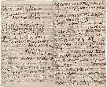 Corrections in the autograph manuscript and a detailed analysis of stylistic elements in the sonatas have led Breig (1999) to suggest that the sonatas were composed in their final state in two distinct groups. The first group, consisting of the first, third and fourth sonatas, has first and last movements which have a fugal character and as close stylistic relation. The second group, consisting of the second, fifth and sixth sonatas where the bulk of composing corrections occur have a concerto-like form, with contrasting tutti and concertato sections in the opening movements and fugal final movements. Even in the second "fair copy" produced by Wilhelm Friedemann and Anna Magdalena, Bach made corrections in three movements (in the first, fifth and sixth sonatas).[8]