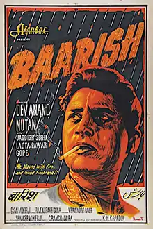 Baarish (lit. 'Rain') is a 1957 Indian Hindi-language crime drama film with Dev Anand and Nutan in the lead roles. Based on the American film On the Waterfront, it is the directorial debut of Shanker Mukherjee.[1][2]