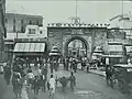 The gate surrounded by shops in 1895