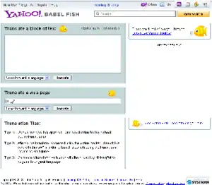 Yahoo! Babel Fish was a free Web-based multilingual translation application. In May 2012 it was replaced by Bing Translator (now Microsoft Translator), to which queries were redirected.[1] Although Yahoo! has transitioned its Babel Fish translation services to Bing Translator, it did not sell its translation application to Microsoft outright.[2][3] As the oldest free online language translator,[4] the service translated text or Web pages in 36 pairs between 13 languages,[4] including English, Simplified Chinese, Traditional Chinese, Dutch, French, German, Greek, Italian, Japanese, Korean, Portuguese, Russian, and Spanish.