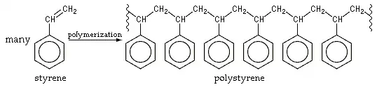 Formation of polystyrene, a polymer with an organic backbone.