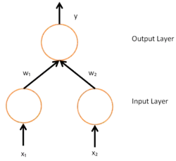 To understand the mathematical derivation of the backpropagation algorithm, it helps to first develop some intuition about the relationship between the actual output of a neuron and the correct output for a particular training example. Consider a simple neural network with two input units, one output unit and no hidden units, and in which each neuron uses a linear output (unlike most work on neural networks, in which mapping from inputs to outputs is non-linear)[lower-alpha 7] that is the weighted sum of its input.