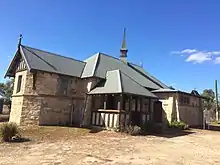 St. Peter's Church was built in 1922 as a memorial to John Campbell Warren, the son of a local farming family who was killed during World War One. The Warren family had settled the area in 1897. The stone used to build the church was quarried at the Warren's property and it was constructed by the local community. The remains are now heritage listed.[4]