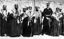 In November, Major H. R. P. Dickson was appointed as Political Agent. His fluent Arabic and visits to their villages allowed him to establish strong relationships with Baharnah peasants, who told him about their grievances. Dickson encouraged them to rise against the tribal administration and promised that tyranny would end and that he would help them.[132] He described Baharnah as "pro-British".[133] He also strengthened his communication with the people by holding an Arab-style regular Majlis.[134] Dickson stated that "British prestige rested on fear and not respect". In one of his reports, he described the political situation as "wholly unsatisfactory" with deep "anti-British sentiment". In the same report, he divided influential Bahrainis into "while list" and "black list", and the opposition into "honest" and "dishonest". In another report he listed the five most influential Bahrainis: Shaikh Isa, his wife,[n 28] Shaikh Hamad, Shaikh Abdulla and Jasim al-Shirawi.[136]