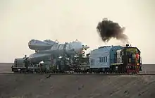 ![]() The Baikonur Cosmodrome's "Gagarin's Start" Soyuz launch pad prior to the rollout of Soyuz TMA-13, 10 October 2008. | |