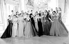 The young women wear haute couture dresses by European designers[28] and overseas fashion houses. They all wear jewelry from the same jeweler.[29] Some couture houses have produced special ball gowns for the event. In 2003, Carolina Herrera made one for Diana Mellon, and in 2014 Danish designer Jesper Hovring made a dress for Viola Mikkelsen.[30] In 2018, the Indo-French fashion house Lecoanet Hemant made a gown for Princess Ananya Raje Scindia of Gwalior.[31] Jet Li's daughter Jane Li was dressed by Dior in 2019.[32]