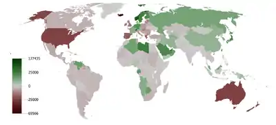 The monetary balance of trade is different from the physical balance of trade[10] (which is expressed in amount of raw materials, known also as Total Material Consumption). Developed countries usually import a substantial amount of raw materials from developing countries. Typically, these imported materials are transformed into finished products and might be exported after adding value. Financial trade balance statistics conceal material flow. Most developed countries have a large physical trade deficit because they consume more raw materials than they produce.