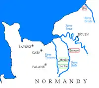 Map showing manors in Normandy associated with the origins of Baldwin FitzGilbert