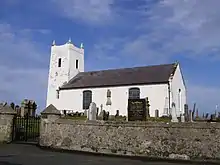 The church as it now stands was completed in 1813 as a replacement for an older structure.[1] It was built under the auspices of Revd Robert Trail to a plan drawn by Henry Wynne.[1] In June 1857, a new organ was installed by Dublin-based firm Telford & Telford, at a cost of £37.[1] A renovation was undertaken in 1883 and involved adding a new pulpit, pews, flooring and heating.[1] Repairs were also made to the roof and spire. Further roof repairs were undertaken following damage caused by a hurricane in December 1894.[1]