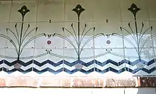 The Ballplayers House is decorated with a ceramic tile frieze with a simple flower motif symbolizing a ball-field, and a zig-zag pattern symbolizing a bouncing ball. Elizabeth Barlow Rogers, head of the Central Park Conservancy when the Ballplayers House was built, described its design as "a contemporary interpretation of Vaux's style."[3]