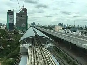 Bang Son Station is a railway station located in Bang Sue Subdistrict, Bang Sue District, Bangkok. It is located 12.907 km (8.0 mi) from Bangkok Railway Station. Passengers can transfer to the Bang Son MRT Station. Bang Son Station serves two systems operated by the State Railway of Thailand, the Southern Line at the at-grade railway halt and the Bang Son-Taling Chan SRT Light Red Line at the elevated station.
