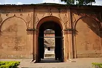 Bangalore Fort began in 1537 as a mud fort.[1] The builder was Kempe Gowda I, a vassal of the Vijaynagar Empire and the founder of Bangalore. Hyder Ali in 1761 replaced the mud fort with a stone fort and it was further improved by his son Tipu Sultan in the late 18th century. It was damaged during an Anglo-Mysore war in 1791. It still remains a good example of 18th-century military fortification. The army of the British East India Company, led by Lord Cornwallis on 21 March 1791 captured the fort in the siege of Bangalore during the Third Mysore War (1790–1792). At the time the fort was a stronghold for Tipu Sultan. Today, the fort's Delhi gate, on Krishnarajendra Road, and two bastions are the primary remains of the fort. A marble plaque commemorates the spot where the British breached fort's wall, leading to its capture. The old fort area also includes Tipu Sultan's Summer Palace, and his armoury. The fort has provided the setting for the treasure hunt in the book Riddle of the Seventh Stone.[2]