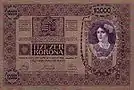 Austro-Hungarian krone paper money appeared in the beginning of the 20th century - almost ten years after the coins were introduced. All banknotes were bilingual (German and Hungarian), and the value was indicated in eight other languages (Czech, Polish, Croatian, Slovene, Serbian, Italian, Ruthenen (Ukrainian)[Notes 1] and Romanian). After the dissolution of the empire banknotes were overstamped to limit their circulation according to the new borders.[1]