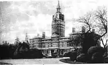 The hospital was commissioned by the Middlesex Court of Magistrates, as the Third Middlesex County Asylum. The hospital was designed by Frederick Hyde Pownall[1] and opened with accommodation for 1,700 patients in 1877.[2] Two more blocks were added in 1881, and in 1889 it came under the auspices of London County Council.[3] Spurs to two of the blocks, based on a design by George Thomas Hine,[4] were added in 1893.[2]