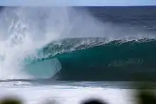 The Banzai Pipeline, or simply Pipeline or Pipe, is a surf reef break located in Hawaii, off Ehukai Beach Park in Pupukea on O'ahu's North Shore. A reef break is an area in the ocean where waves start to break once they reach the shallows of a reef. Pipeline is known for huge waves that break in shallow water just above a sharp and cavernous reef, forming large, hollow, thick curls of water that surfers can tube ride. There are three reefs at Pipeline in progressively deeper water farther out to sea that activate according to the increasing size of approaching ocean swells.[1]