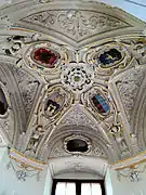 Castle in Baranów Sandomierski passed successively into the possession of families: Wiśniowiecki, Sanguszko, Lubomirski, Małachowski, Potocki and Krasicki. In 1867 it was acquired by Feliks Dolański.[4] The structure was restored by subsequent owner Stanisław Dolański after a fire in 1898.[4] Under the direction of Kraków architect Tadeusz Stryjeński some changes were carried out in the layout.[4] During this reconstruction one of the chambers on the ground floor was adopted as chapel and decorated in art nouveau style. Stained-glass windows by Józef Mehoffer and an altar with a painting of Jacek Malczewski Our Lady of the Immaculate Conception were major features of the interior. The castle remained in the possession of the Dolański family till the outbreak of World War II.[2] Due to war damages the castle was renovated by the State in the years 1959–1969, under the guidance of professor Alfred Majewski. The building's sponsorship was turned over to state-run Sulphur Mines and "Siarkopol" plant in nearby Tarnobrzeg.[2]