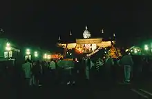 Its next important performance occurred on 8 October 1988, at the open air La Nit festival in Barcelona, which was staged on the occasion of the arrival of the Olympic flag from Seoul. Together, Mercury and Caballé sang three tracks from the forthcoming album Barcelona, namely "Barcelona", "How Can I Go On" and "The Golden Boy".[10][11] This was the last live performance by Mercury, who was already beginning to suffer from AIDS.[12] He died in 1991, so the recording of the song was played over a travelogue of the city at the start of the international broadcast of the 1992 Olympics opening ceremony.[13][14]