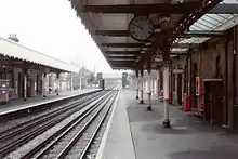Few alterations took place to the station upon transfer to the Underground. Barkingside station is a "Grade II" listed building, marking it as a structure of architectural significance.[8] Probably designed under the direction of W. N. Ashbee, the GER architect, it is dominated by a substantial brick building, surmounted by a cupola.[8] The interior is notable for the fine hammerbeam roof to the ticket hall. Both platforms retain the ornate canopies with the "GER" initials still visible in the bracketry.