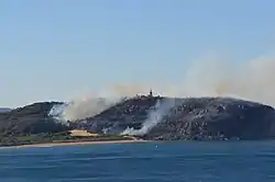 Barrenjoey Headland bushfire, 28 September 2013, viewed from the sea